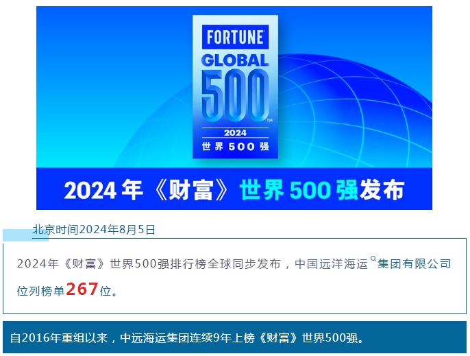 要闻 | 中远海运连续9年上榜《财富》世界500强