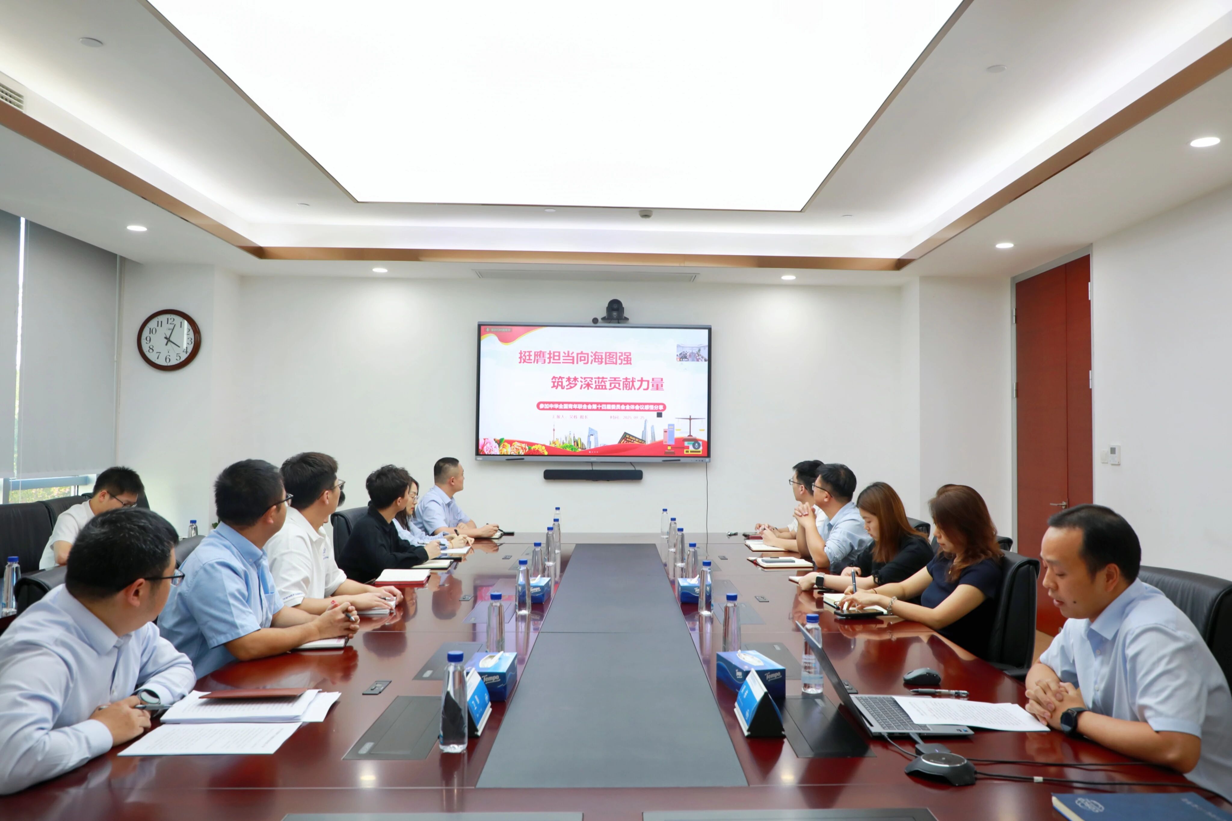他围绕《挺膺担当向海图强,筑梦深蓝贡献力量》主题,深入宣贯了本次大会精神,并结合自身丰富的航海经历和工作经验,向与会的船岸青年分享了个人参加本次大会的体会,以及从船长身份转变为陆岸管理岗位的感悟心得。号召大家要坚定理想信念,厚植家国情怀,勇担历史使命,共同书写为中国式现代化挺膺担当的航运新篇章。 会上,公司团委负责人带领大家认真学习了中共中央办公厅印发的《关于加强党建带团建工作的意见》精神,并就团委近期重点工作作了部署安排。