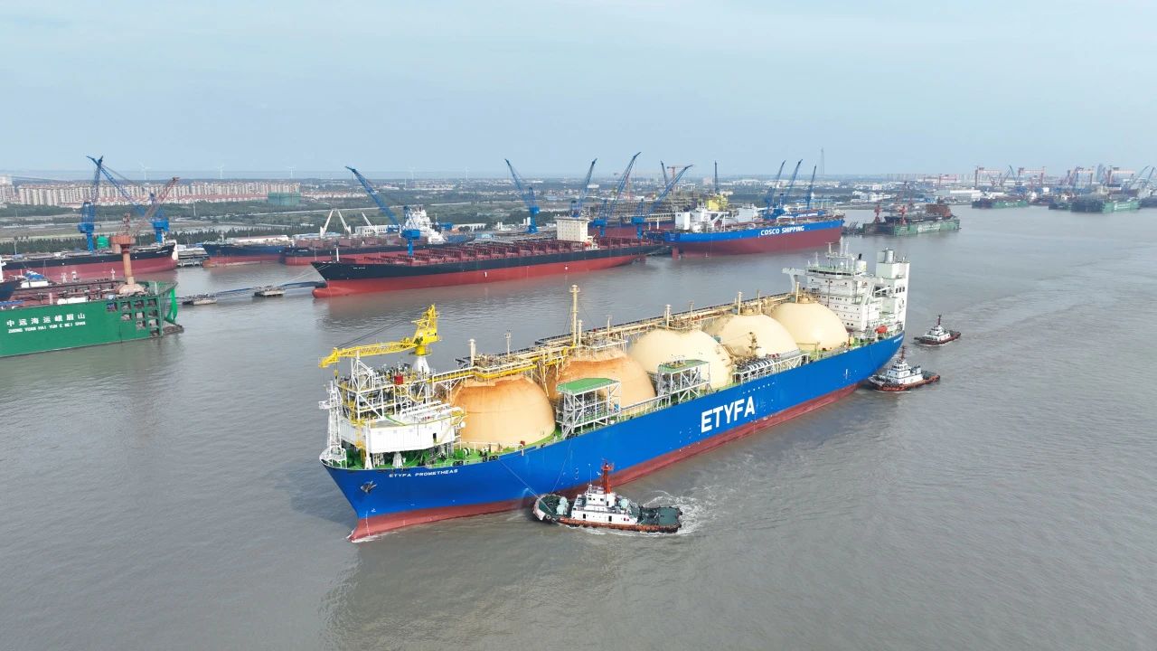 1月16日上午,由中远海运重工所属上海中远海运重工承接的中国石油管道局格里亚LNGC改装普罗米修斯FSRU交付仪式在上海中远海运重工2号码头成功举办。该项目是中国国内第一例MOSS球罐型LNGC改装FSRU项目,是中国企业与欧盟首次合作的“一带一路”能源项目。