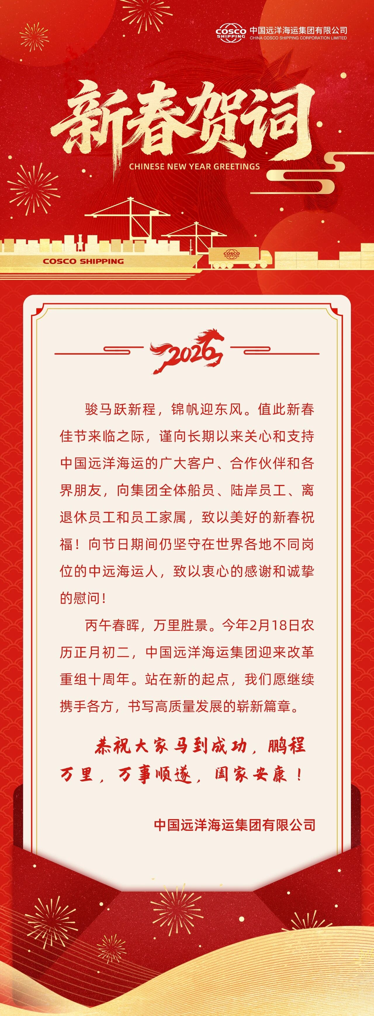 中远海运新春贺词,共赴丙午新程!