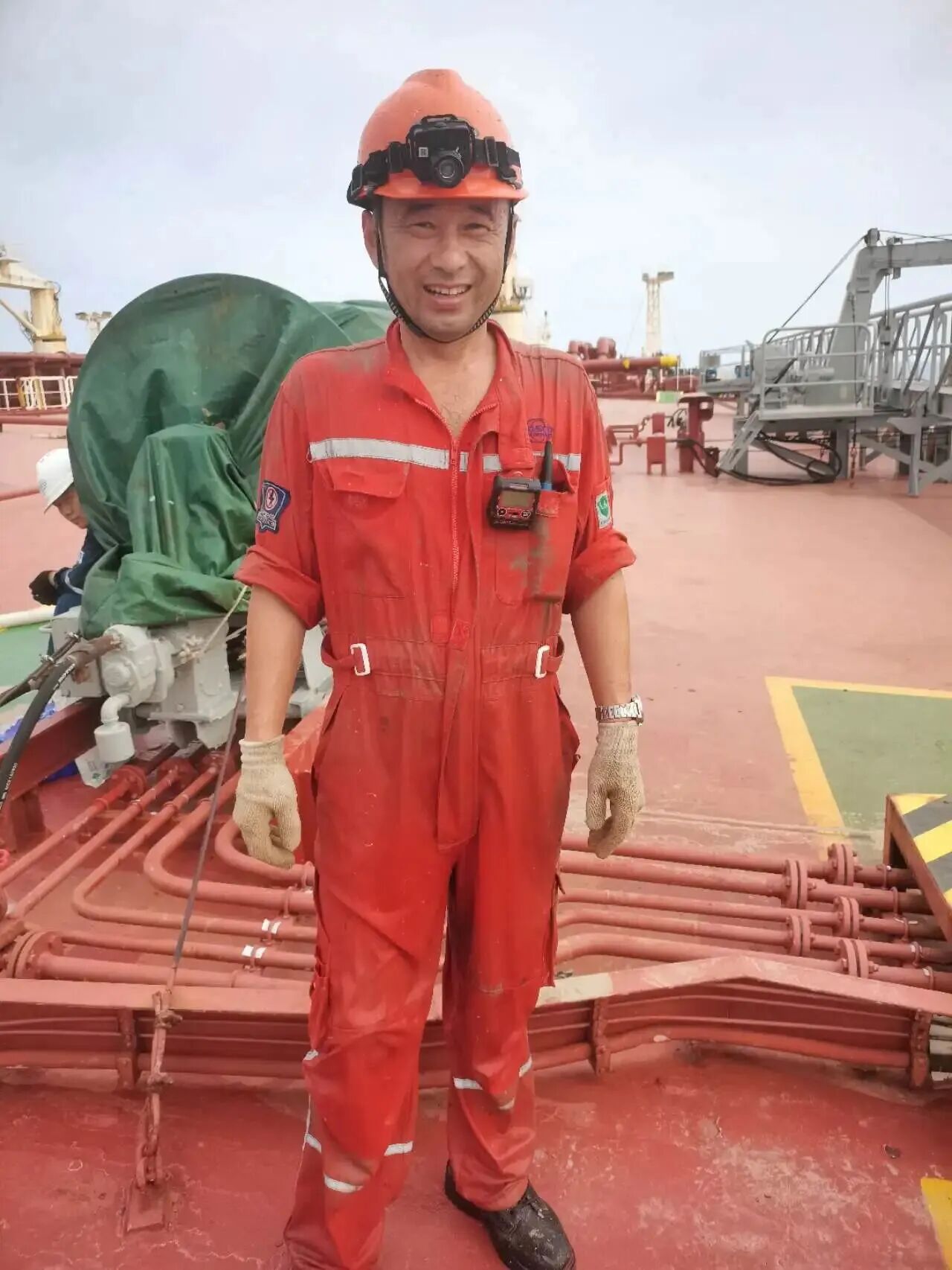 人心齐,泰山移。压载舱内闷热潮湿、空间狭小,作业环境较为恶劣。人员下舱数分钟,便全身湿透,分不清是汗水还是泥水。轮机长冯杰和大副潘高峰、大管轮田万来以身作则、靠前指挥,带领船员们佩戴头灯,爬直梯、迈斜梯,小心翼翼地钻过仅容一人通过的舱室圆孔。每个作业轮次持续三个多小时,每当爬出舱口时,船员们早已是筋疲力尽、汗流浃背,工作鞋里也灌满了污泥,但大家没有一个叫苦叫累,他们连续奋战七天,共清除淤泥800多立方米。