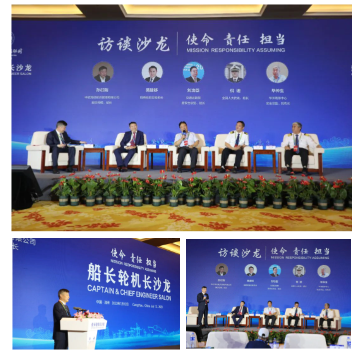 7月12日下午,主题为“使命、责任、担当”的中国航海日活动周专题论坛——船长轮机长沙龙成功在沧州举办。本次沙龙由中国航海学会、沧州市人民政府、国家能源集团、交通运输部水运科学研究院、中国船东协会、中远海运集团联合主办,中远海运船员管理有限公司承办。中国航海学会理事长/交通运输部原副部长何建中,IMO海事大使/交通运输部原副部长、船长徐祖远,交通运输部原安全总监、船长刘功臣,中远海运集团安全总监、船长翁羿,中国船东协会常务副会长张守国,中国海员建设工会副主席、船长徐一飞,沧州市副市长王晓玲,交通运输部海事局船员管理处副处长李跃全,全国人大代表、公司船长倪迪,招商轮船总轮机长吴建移,华洋海事中心安全总监、轮机长毕仲生和“雪龙”号船长沈权出席活动。沙龙由公司副总经理孙衍刚主持,公司党委副书记葛军参加了沙龙。 致辞环节,何建中、王晓玲、徐一飞、张守国、李跃全、翁羿先后对中国航海日活动周首次举办船长轮机长沙龙表示庆祝,对船长轮机长适应新时代的发展提出了寄望,并祝贺沙龙圆满成功。